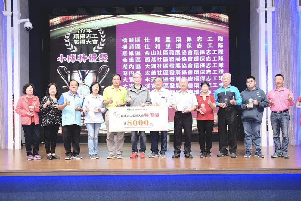 本次表揚獎項有環保志工小隊卓越獎、特優獎、環保志工志願服務榮譽徽章金(銀)質獎、績優環保志工及環保志工攝影比賽特優、優等獎等獎項,共計獲獎人數214人。