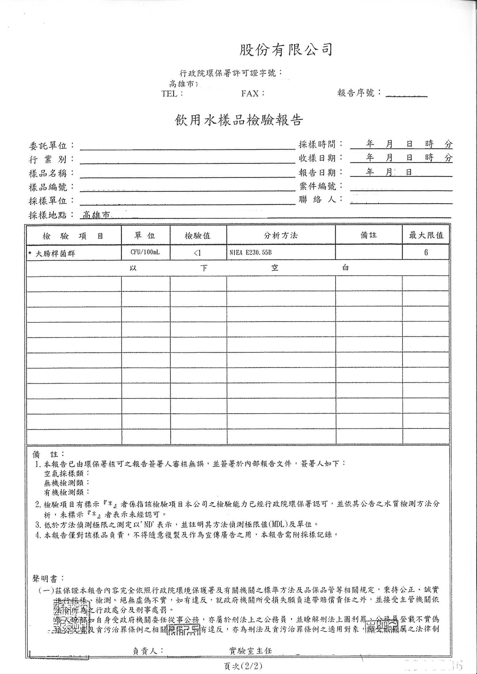 環保局表示,若飲水設備經該局抽驗結果為不合格者,將要求該設備管理單位「關閉進水水源,停止飲用」、懸掛「暫停使用」警語告示,俟飲水設備維修工作完成後,再進行水質複驗,合格後才可提供飲用。