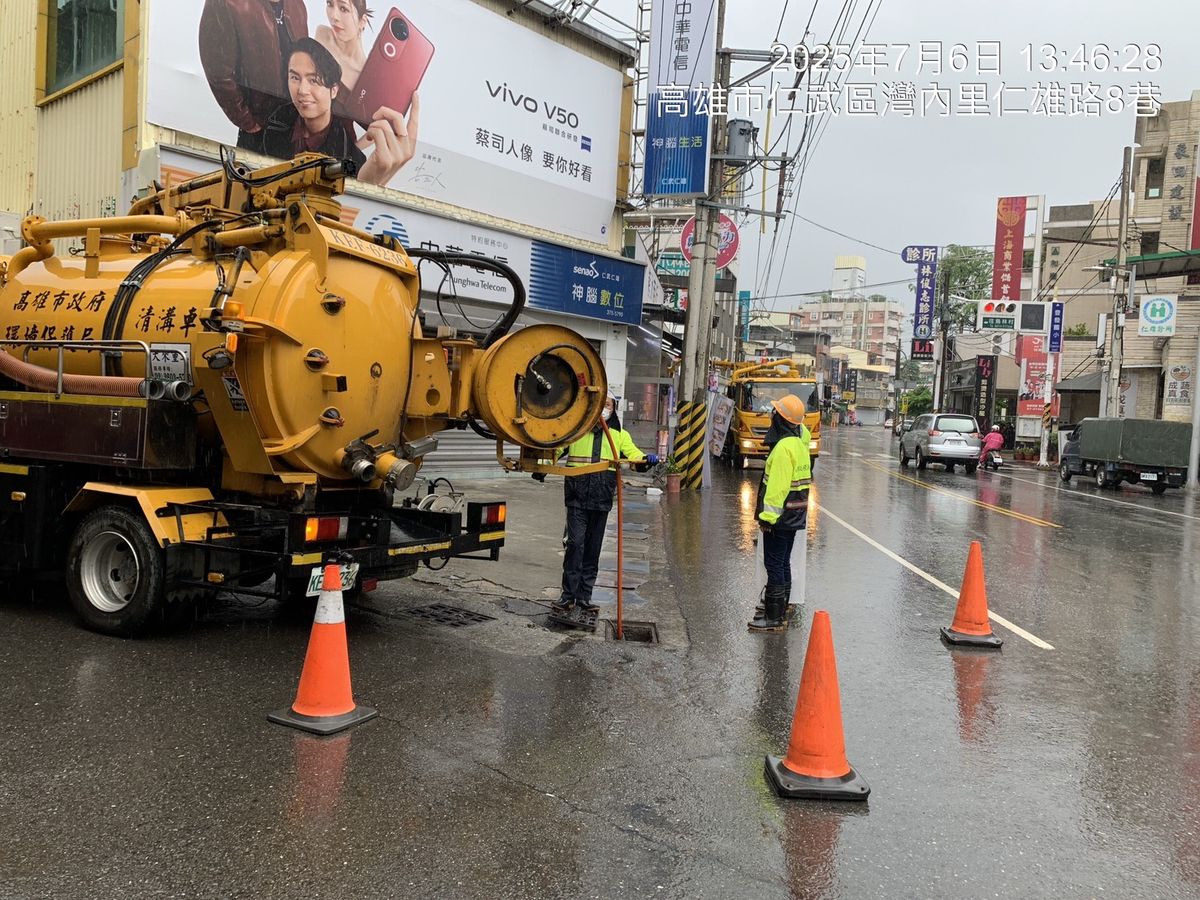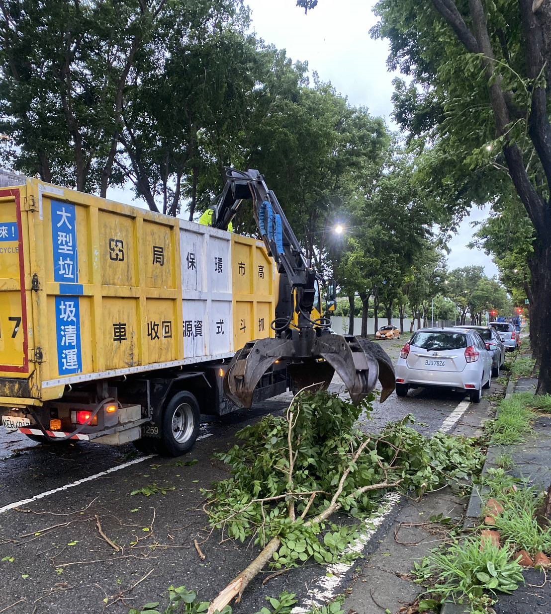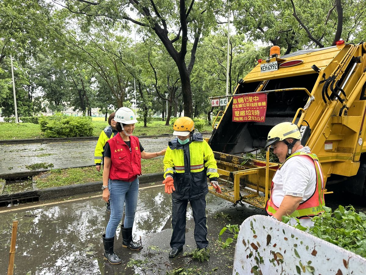 環保局表示,面對颱風強風豪雨,全面掌握即時災情並調度機具人力進行防災應變,自7月4日至6日止,已累計動員1,187人次、201輛次車輛機具,主動清除路旁洩水孔16,097件、清疏溝蓋10,506件,總共清運覆蓋物與廢棄物達258.66噸,有效提升側溝排水效率、減緩積淹水情形。7月7日颱風稍離後,環保局天未亮即派員派出200人次,清疏搶通各主要道路。張瑞琿並於期間至各區視察清疏情況,並親自向辛苦作業的清潔隊員致意慰勞,感謝同仁風雨無阻默默辛勤的付出。