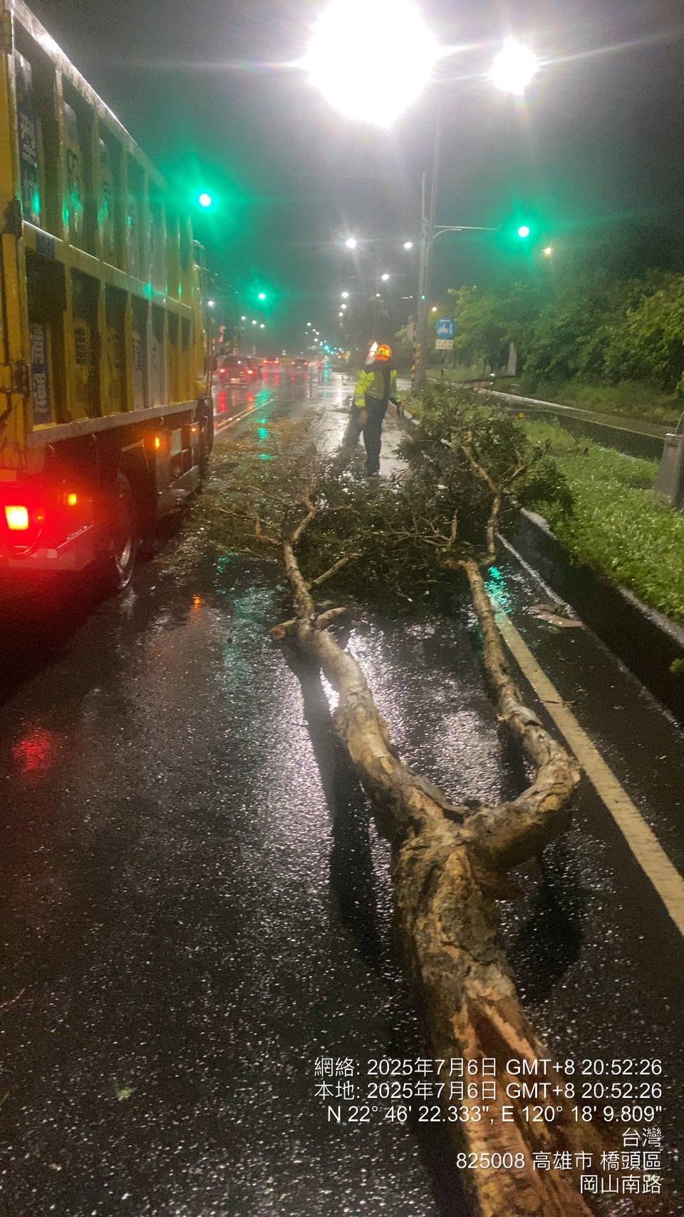 中度颱風丹娜絲7月6日起緊貼台灣西部北行,帶著13級強陣風與驚人雨勢,導致全市多區出現路樹傾倒、雜物阻路等災情。高雄市環保局清潔隊在7月7日清晨風雨稍歇後立即動員,力求盡速恢復市容、確保市民通行安全。