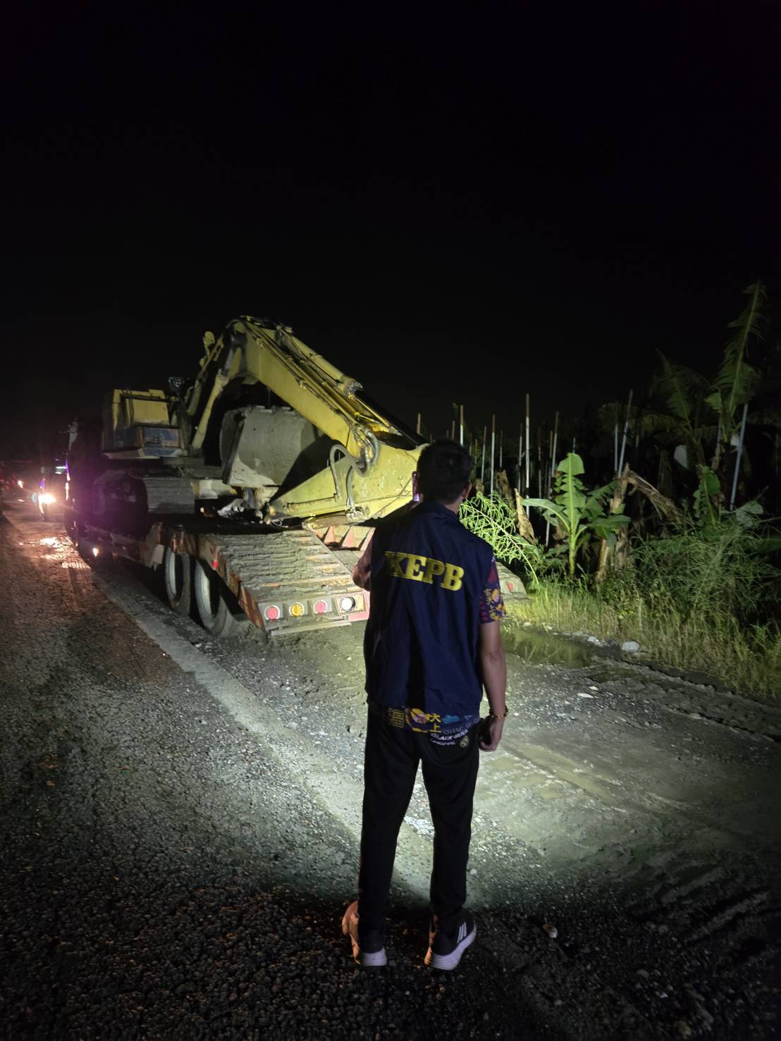 環保局表示,該處為既有專案列管坑洞,現場發現黃姓司機企圖移動怪手,警方立即留置人車,並進行現場戒護。稽查人員確認現場共有2台怪手,立即調派拖板車執行行政扣留,以利後續調查與蒐證。