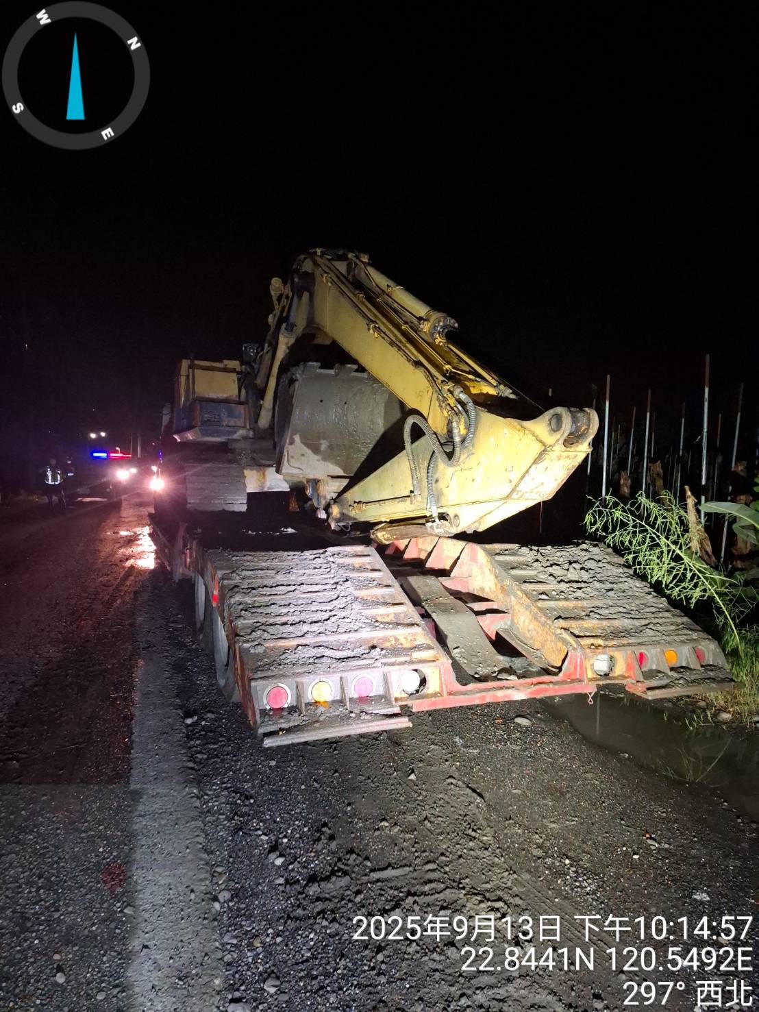 環保局昨日(9/13)夜間接獲警方通報,美濃區成功段列管坑洞疑涉《廢棄物清理法》案件。當日晚間19時35分,警方於成功段土地附近巡查時,發現一輛車輛因地勢泥沼下陷受困,現場並有2台怪手進入,情形可疑。