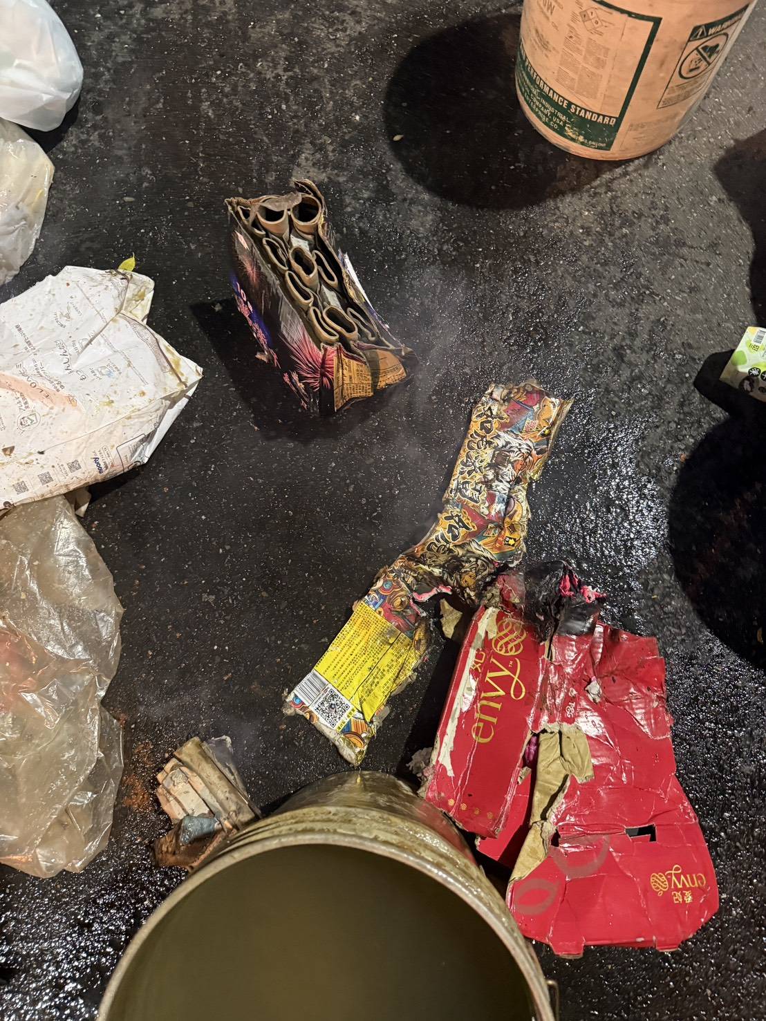 高雄市前鎮區清潔隊昨(25)日晚間於福民街與港壽街口執行夜間垃圾收運時,遭民眾將未熄滅之煙火混入垃圾丟入垃圾車,隨即發生冒煙情事,駕駛立即將車輛駛至路旁傾卸垃圾,撿拾燃燒物,所幸人車平安,清潔隊亦立即派員前往現場清除殘餘垃圾,確保環境及交通安全。