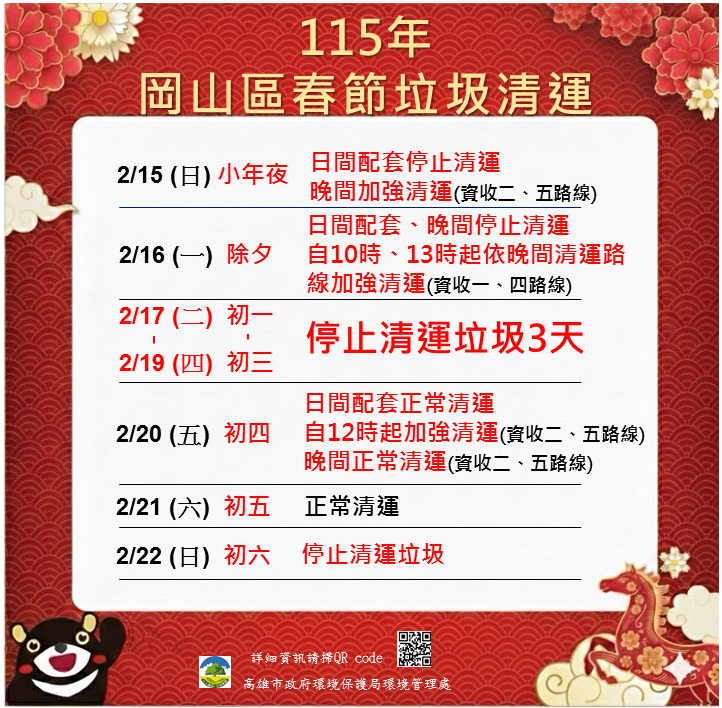 02 月 15 日 (日) 小年夜 加強清運 |